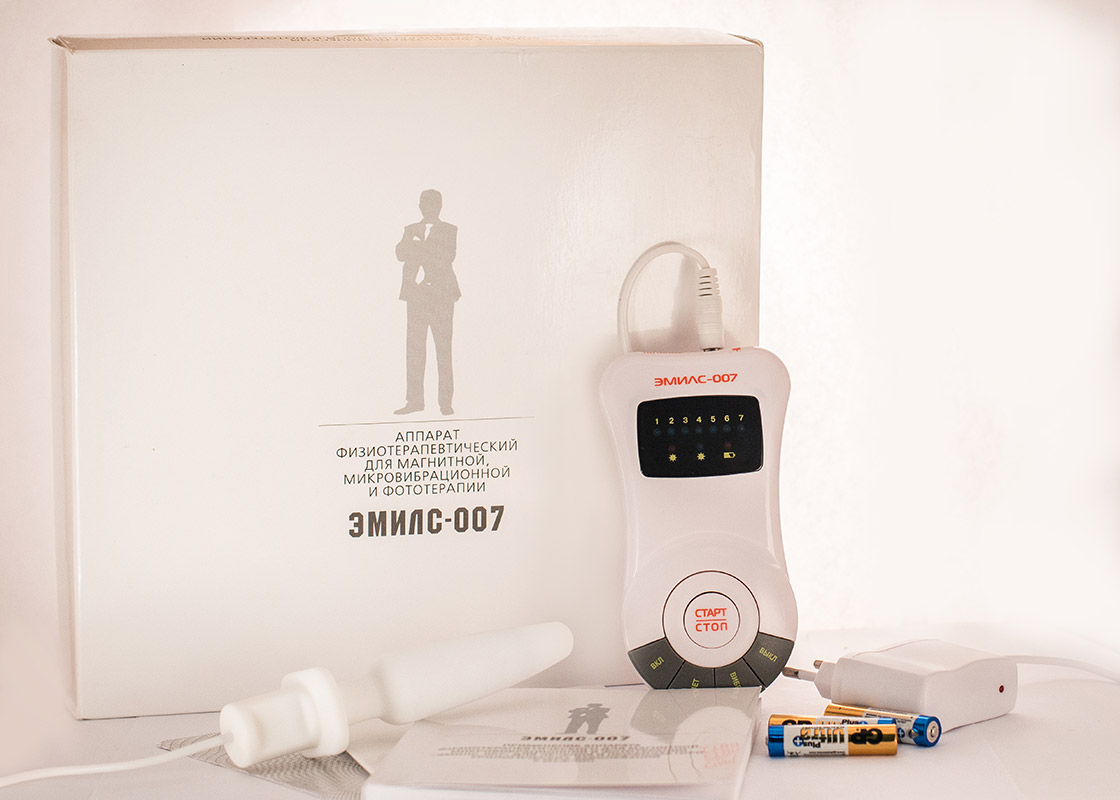 Аппарат «Эмилс-007», разработанный российскими учеными,— инновационный физиотерапевтический прибор, который предназначен для лечения широкого спектра заболеваний мочеполового тракта у мужчин. Уникальность «Эмилс-007» прежде всего состоит в многопрофильности физиотерапевтического эффекта. Прибор сочетает действие: • селективной фототерапии с разделением на красный и синий спектры оптического излучения; • низкочастотной микровибротерапии; • постоянного магнитного поля. Кроме того, «Эмилс-007» используют и для профилактики воспалительных урологических заболеваний у мужчин и нарушений сексуальной функции.