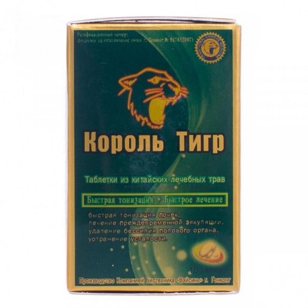 Король тигр – уникальный мужской препарат. Относится к полезной для здоровья биологически-активной добавке. Состоит целиком из природных веществ (компоненты растительного и животного происхождения). Улучшает эректильные возможности у мужчин любого возраста.