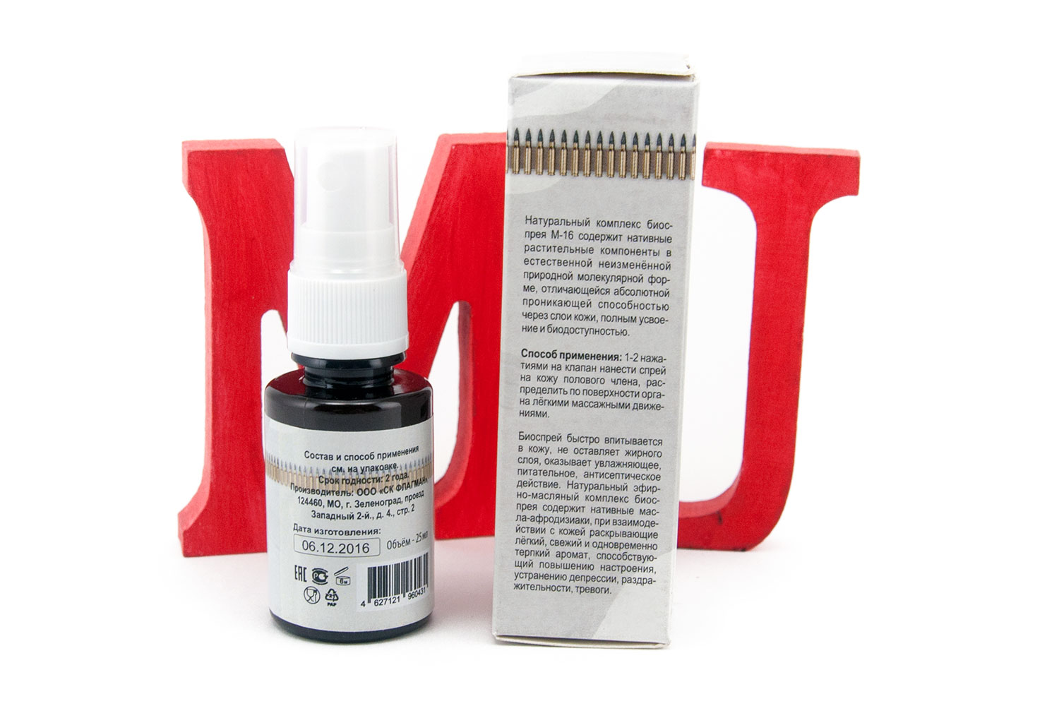«Спрей М16» – аэрозоль мгновенного действия для стимуляции эрекции для мужчин. Помогает при эректильной дисфункции, слабой или непродолжительной эрекции. Способствует продлению полового акта в 1,5 и более раз. Также разрешен для использования женщинами с целью повышения чувствительности влагалища и улучшения ощущений от занятий интимом.