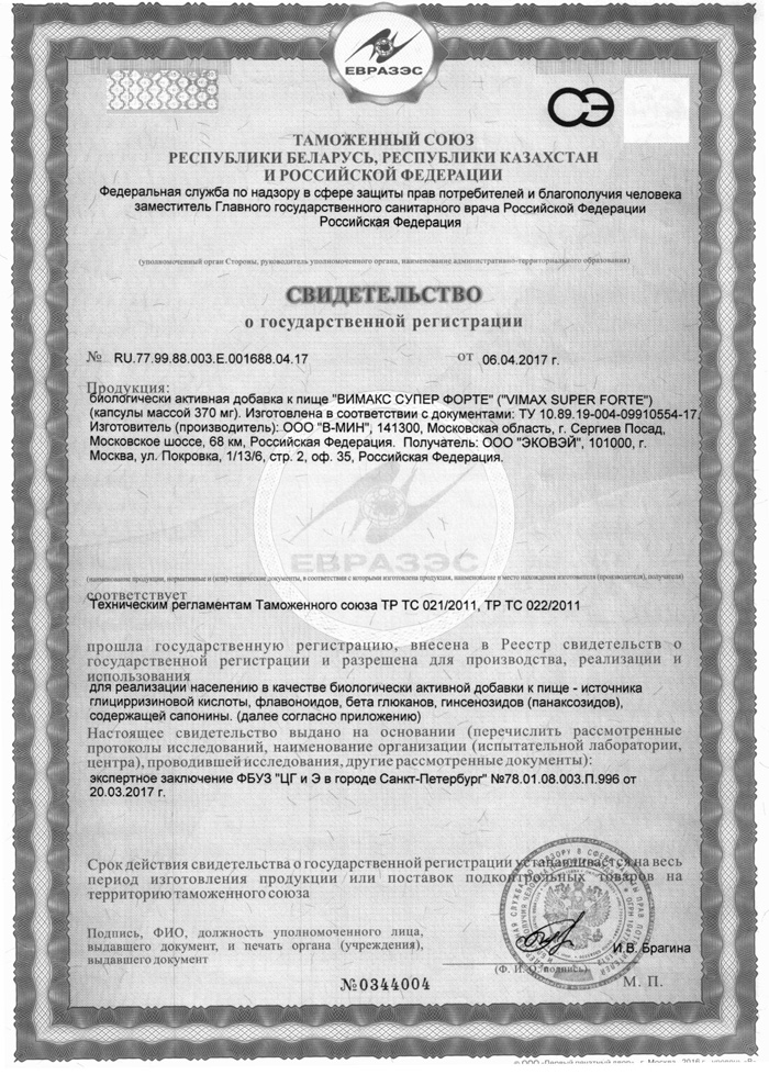 VIMAX (витамин B3, витамин E, боярышник обыкновенный, горянка стрелолистная (трава похотливого козла), катуаба, сереноя ползучая, муира пуама, гинкго билоба, женьшень обыкновенный, тёрнера раскидистая, инозин, колючая лоза, стручковый перец)