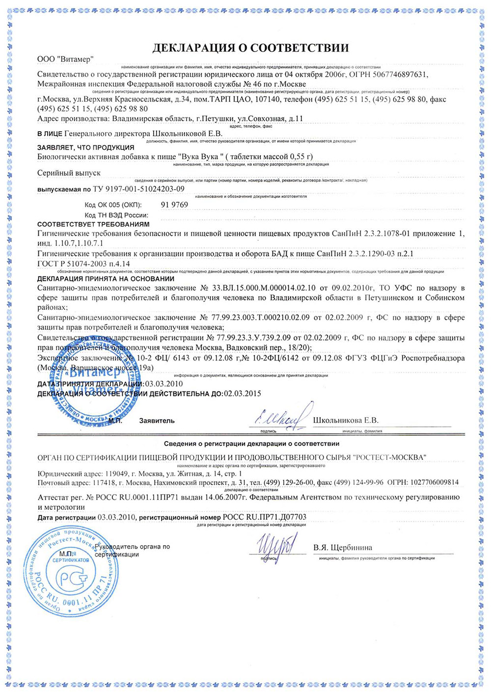 | Производитель: | ООО "Витамер", Россия |