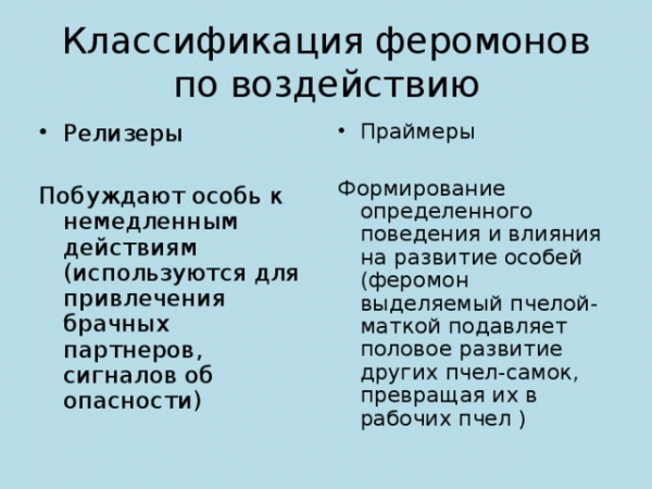 - Праймеры. Воздействуя на обонятельные рецепторы окружающих, они подталкивают к определённому поведению.