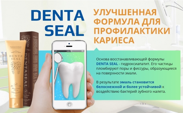 Паста Дента сеал – уникальный, новый продукт российского производителя, не имеющий аналогов во всем мире. За счет сочетания натуральных компонентов эксперты смогли добиться естественного устранения микротрещин в структуре эмали, избавления от кариеса, значительного отбеливания и решения многих других проблем полости рта.