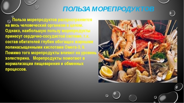 Стоит также помнить, что, при всей своей полезности, морские гады, а особенно мидии и некоторые виды рыбы, накапливают большое количество ртути. Так что лучше всего включать в свой рацион тех представителей морских глубин, которые выросли в более-менее чистой воде и в естественных условиях. Итак, мысли о том, чем полезны морепродукты, сначала нужно направить в русло, где купить свежие морепродукты.