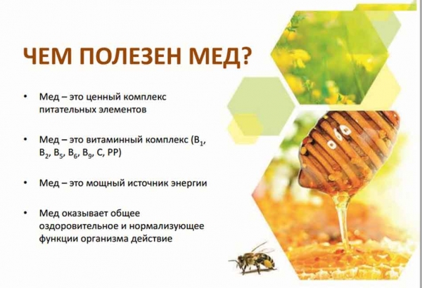 Мед проявляет свои активные свойства за счет оптимального состава. Он содержит большое количество питательных веществ и витаминов. Поэтому употребление даже небольшого количества этого ароматного продукта восполняет недостаток некоторых веществ и улучшает самочувствие на длительное время.