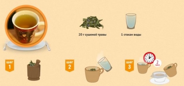 - Можно сделать концентрированное лекарство. Для этого понадобится 2 ложки травы и стакан кипятка. Все это прогреть в течение 15 минут, а затем дать настояться в течение полутора часов. Пить по ложке три раза в день. Принимать также желательно до приема пищи, иначе могут возникнуть дискомфортные ощущения.