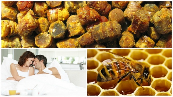 При использовании народных средств для улучшения потенции очень часто отдают предпочтение продуктам пчеловодства. Обязательно нужно отметить пчелиную пергу. Это пыльца цветов, которая утрамбована в ячейки. Она, как и все продукты пчеловодства, имеет огромное количество полезных свойств. Польза и вред данного препарата до сих пор исследуются учеными.