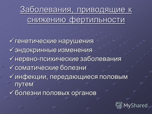 Также к снижению фертильности могут приводить: