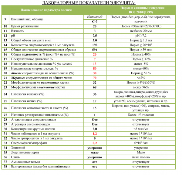 Нормальный показатель густоты спермы