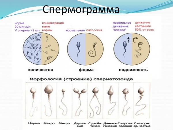 Также в условиях лаборатории обязательно посчитают количество спермиев в 1 мл биоматериала. Их должно быть не меньше 20 млн. Также специалисты оценят их вид и подвижность. Здоровый спермий должен иметь нормальное тело, головку, а также жгутик, длина которого в 10 раз больше длины всего тела. Сперматозоиды не могут склеиваться друг с другом; должны быть нормальными по всем морфологическим признакам.