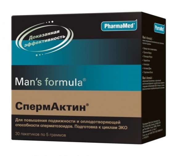 - «Спермактин». Основным компонентом средства является L-карнитин. Он повышает кровообращение органов малого таза, а также влияет на выработку полноценных половых клеток.