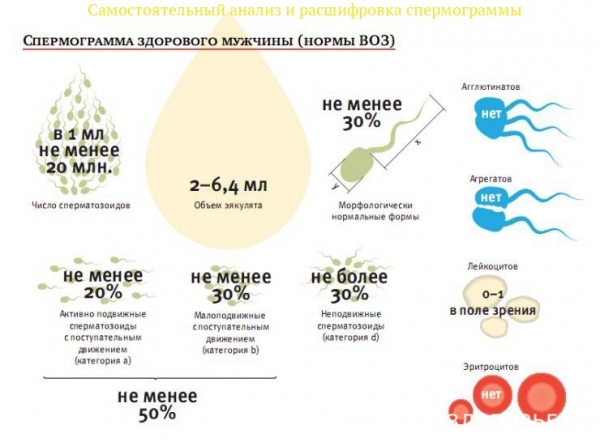 Внимание! Важный показатель — соотношение полноценных активных форм сперматозоидов к поврежденным клеткам.