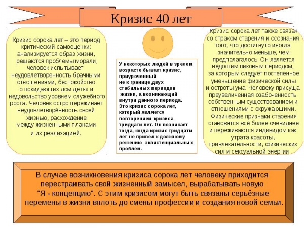 Наверняка все слышали про кризис 40 лет у мужчин. Некоторые считают это выдумками психологов, но нельзя не признать, что проблема действительно существует. Именно на возраст между 37 и 45 годами, в среднем, приходится большинство внезапных изменений в поведении мужчины, депрессивных состояний у представителей сильного пола.