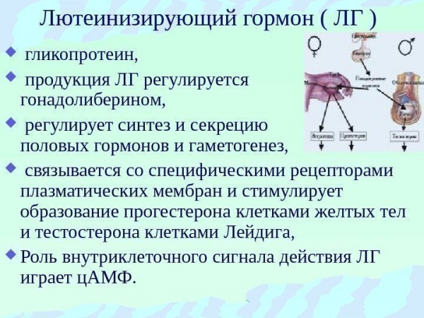 Лютеинизирующий гормон — это гликопротеидный комплекс, вырабатываемый в гипофизе. Работа гормона происходит в результате взаимодействий нервных волокон на мембране тканей репродуктивных органов или, точнее, на клетках Лейдига. Вышеуказанные клетки включены в клеточную структуру тестикул и помогают при производстве тестостерона. Тестостерон воздействует на появление различий между однородными клеточными структурами.