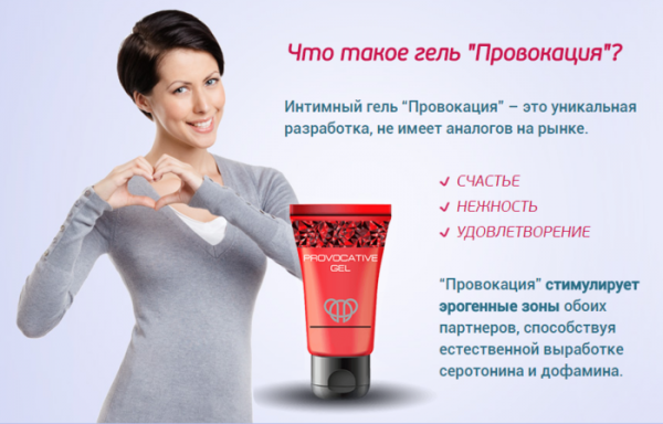 Многие озабочены вопросом: где купить гель «Провокация»? Данный препарат можно заказать на нашем сайте. Необходимо оформить заявку на покупку и заполнить необходимые данные о себе и о своей покупке. Товар отправляют почтой во все регионы России.