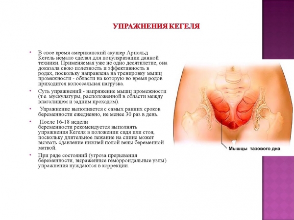 Специалисты советуют освоить комплекс упражнений Кегеля для женщин еще до родов, так как в процессе рождения малыша на половой орган оказывается сильнейшая нагрузка. А данная методика поможет сконцентрироваться, чувствовать свое тело и управлять мышцами. Поэтому у тех, кто освоил комплекс тренировок раньше, роды проходят намного легче.