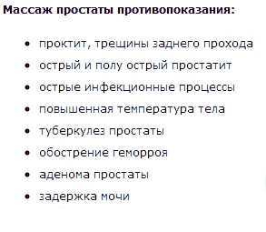 Массаж простаты в домашних условиях и в поликлинике запрещен в следующих случаях: