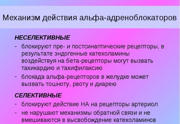 Препараты альфа адреноблокаторов приобрели широкое применение для лечения малоподвижных больных и пациентов с ожирением. Альфа-адреноблокаторы препятствуют развитию рефлекторного сердцебиения.