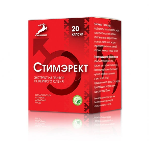 - Стимэрект. В его состав входят элементы, которые способствуют повышению влечения, а также появлению стойкой эрекции. Прием БАДа следует осуществлять в утреннее время по 1 капсуле. Курс должен длиться от 14 до 21 дня. Повторный курс можно начать только через 10 дней. Цена – 1 000 рублей.