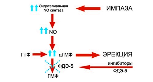 Ориентируясь на основной принцип гомеопатии, производитель включил в состав антитела к эндотелиальной NO-синтазе (вводятся в микроскопических дозах), что значительно повышает активность данного фермента. Это восстанавливает нормальное производство оксида азота, что обеспечивает повышенное кровенаполнение главного мужского достоинства при возбуждении. Это гарантирует сильную и относительно длительную эрекцию.
