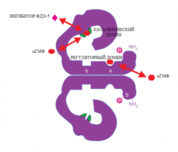 Силденафил подавляет активность этого фермента, способствуя увеличению уровня цГМФ. Усиливается кровоснабжение пениса и обеспечивается возможность эрекции.