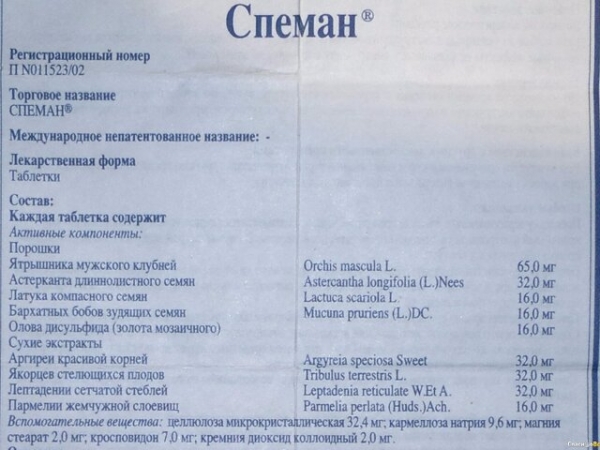 - Сперматорея. Употреблять Спеман форте по 1-2 шт. таблеток трижды в день до еды. Курс лечения – до полутора месяцев, затем дозы снижаются.