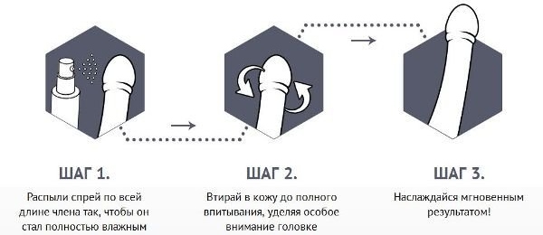 Специалисты советуют использовать лекарство в спрее непосредственно перед сексом. Даже если немного средства останется на половом члене, то это только усилит ощущения во время занятий любовью и послужит дополнительной смазкой.