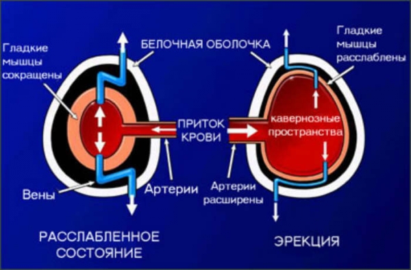 Препараты из этой группы блокируют ФДЭ-5. Благодаря этому компоненту происходит накапливание циклического гуанозинмонофосфата, гладкая мускулатура в артериях полового члена расслабляется. В артерии поступает кровь, пещеристые тела ее накапливают – наступает эрекция. После коитуса кровенаполнение снижается, величина члена возвращается к исходным значениям.