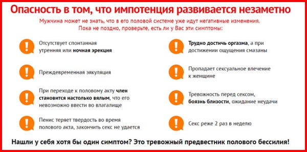 У импотенции симптомы следующие: