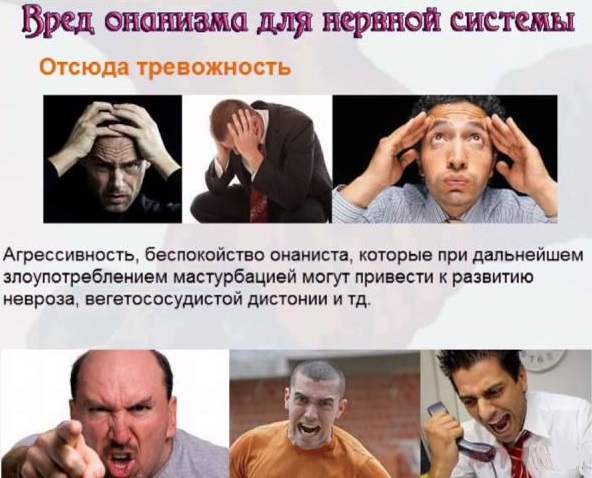 Если вернуться к работе нервной системы и изменениям в поведении следует заметить, что при онанизме адреналин, который вырабатывается во время полового возбуждения, не сжигается. Происходит это, потому что нет физической нагрузки. А при полноценном половом акте она есть. В итоге, накопившийся адреналин выплескивается в виде агрессии, тревожности, бессонницы, постоянного беспокойства. Даже если сразу после акта онанизма обнаруживается облегчение и повышается настроение, все равно затем становится плохо, мрачно и настроение ухудшается.