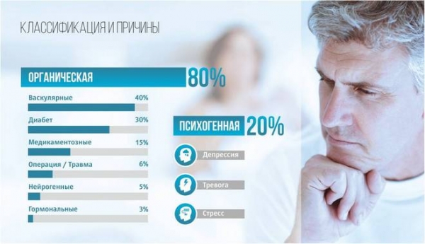 Причины импотенции или слабой эректильной функции могут быть разнообразные. Но чаще всего причины эректильной дисфункции относятся к одному из трех видов: