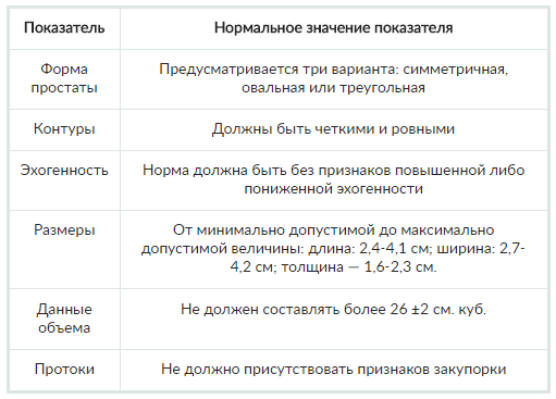 Во время УЗИ предстательной железы и последовательной расшифровки результатов учитываются такие показатели, как: