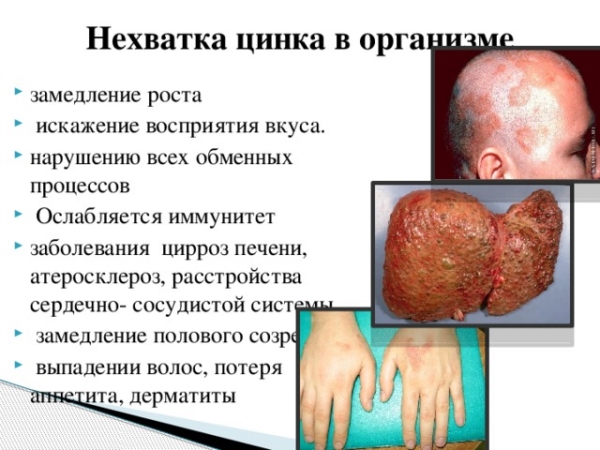 Следующие симптомы могут отмечаться при цинковом дефиците: